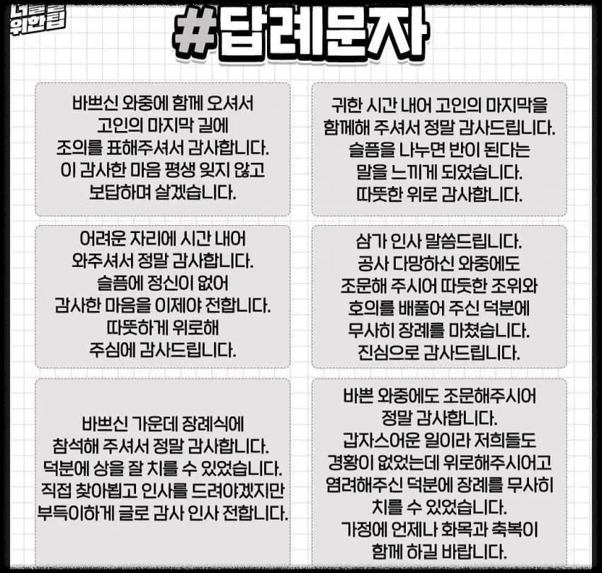 부고문자는 간결하게 필요한 정보를 담아 보내시면 됩니다.