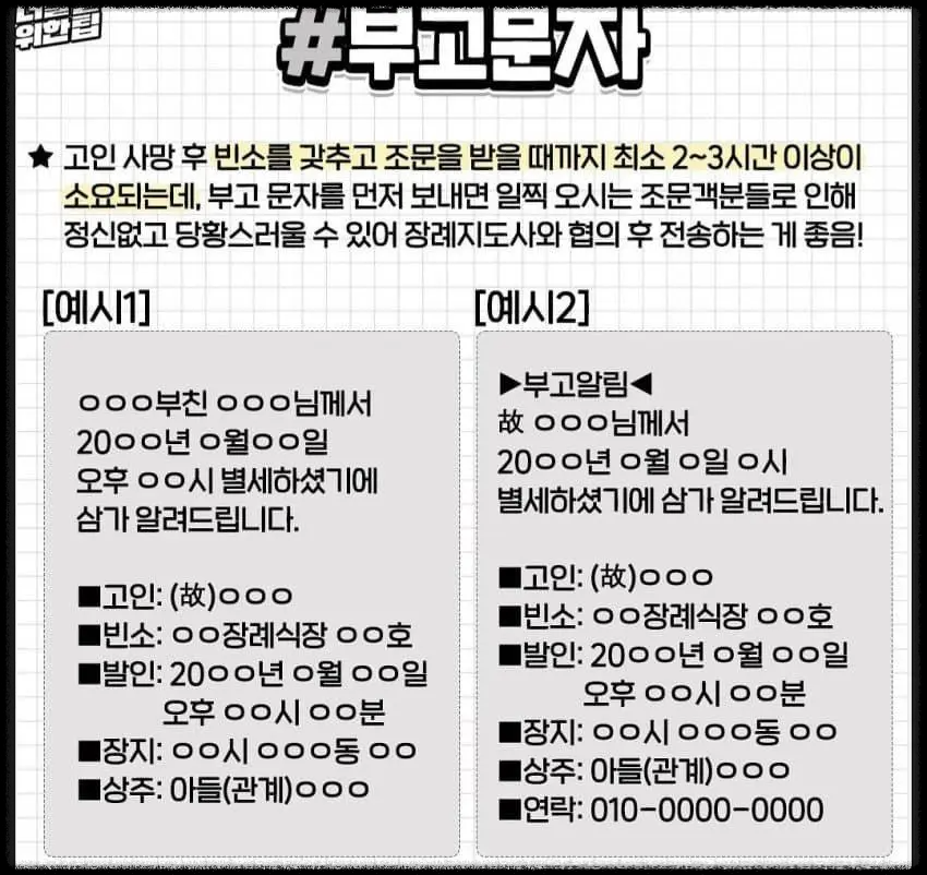 부고문자 필수 사항