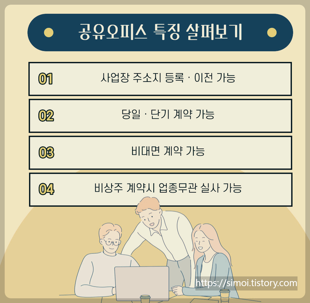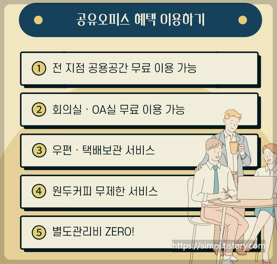 해당 장소에 임대비만 내고 이용이 가능하며, 여러가지의 혜택도 있어서 사업자분들에게는 유용하다.