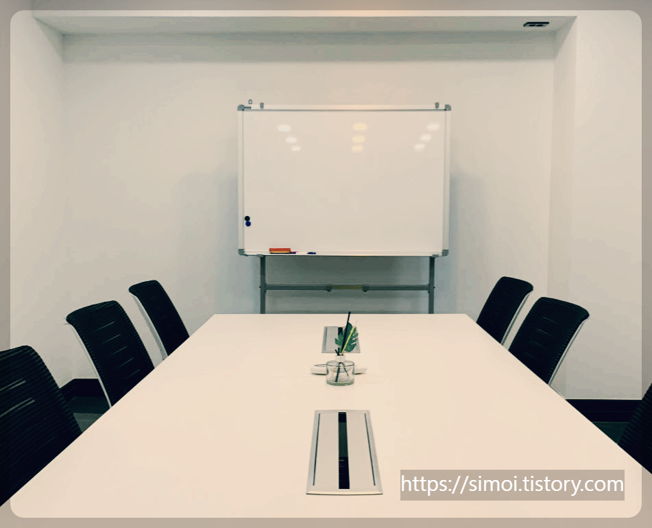 회의를 할 수 밖에 없는 업무자분들이 많은데 사무실 안에서 회의가 되고 이곳은 무상으로 이용할 수 있다.