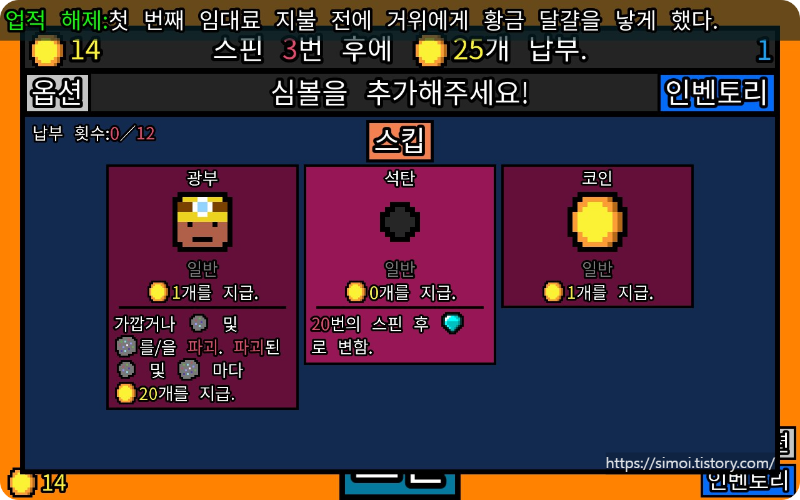 까치: 임대료를 지불하기전 1코인이 부족하여 엔딩
