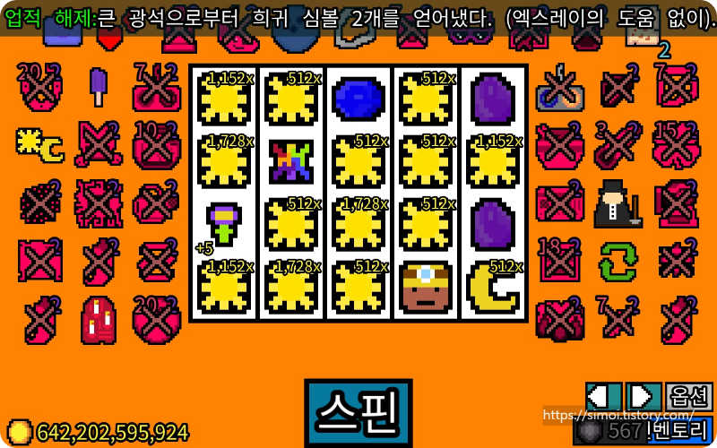 미다스폭탄: 회전하는 동안 18개 이상의 기호를 파괴합니다.