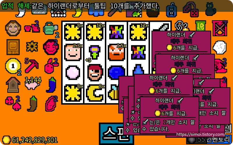 에메랄드: 회전 중 2 개 이상 에메랄드 획득