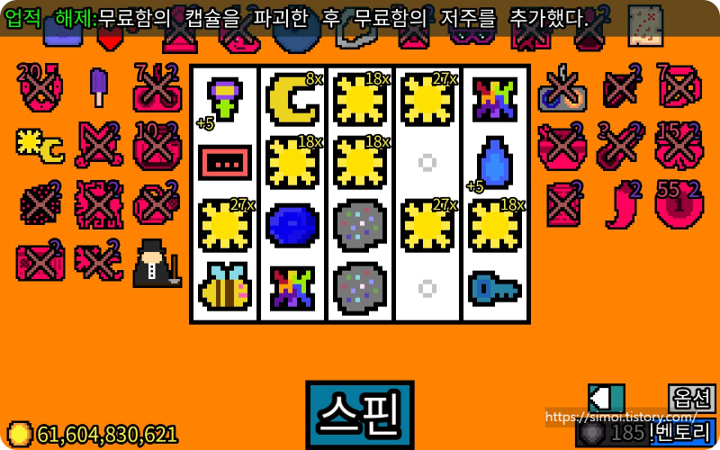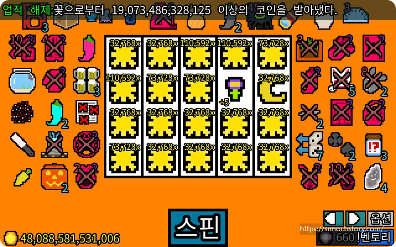 지불 후에는 코인 1개를 받고 스핀당 5개를 얻게 됩니다.