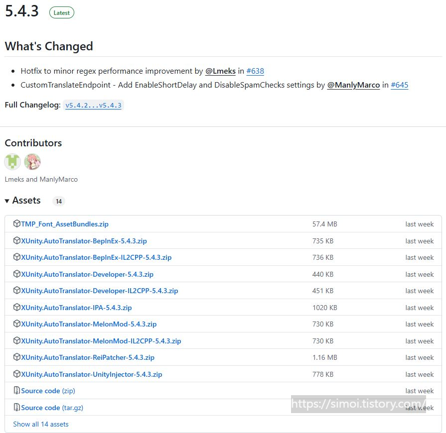 1. 먼저 위 링크로 들어가서 XUnity AutoTranslator-Reipacher 를 다운받습니다.