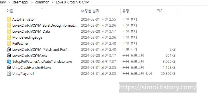 2. 다운받아서 압축 열어보면 SetupReiPatcherAndAutoTranslator 파일이 있는데 게임이 있는 폴더에 넣고 실행합니다.