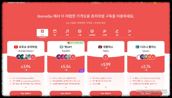 OTT 구독을 계속 이용하면서도 월 구독료를 절약하고 싶다면 겜스고는 매력적인 선택이에요.